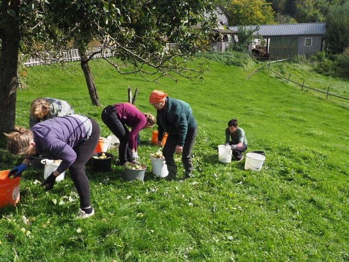 Die Obsternte erfolgt überwiegend mit vielen fleissigen und kundigen Händen.