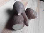 Länglich, rundlich, spindel- oder walzenförmige Knollen mit leicht mehligem, orange-rotem Fruchtfleisch.