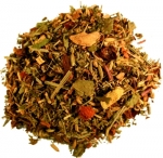Zutaten: Pfefferminze, Zitronengras, Fenchel, Wildrosenfrüchte, Cassia Zimt, Augentrost, Ingwer, Nelke, Melisse, Kardamom, Süßholz, Löwenzahnwurzel, schwarzer Pfeffer.